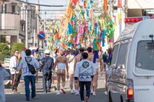 はだかまつりの撮影をする
