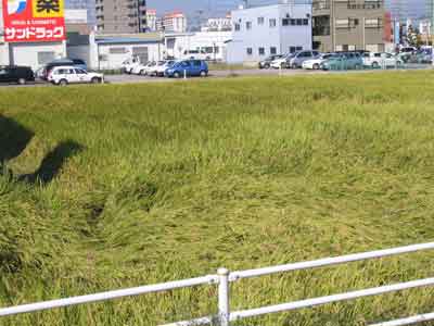 とは言えまだまだ田んぼは多いですが、最近の田んぼで良く目にするのが倒稲。台風でなくてもちょっと強い風が吹くだけでこうなります。こうなると、米の品質はもちろん、機械で刈り取れないなど多くの問題が出るようです。