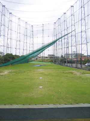 練習場のボールを回収する仕組みっていろいろあるんですね。ここは敷いてあったネットが片方持ち上がって片側に流すシステムです。この時を狙ってネットの下に打ち込んでやれ~っと意地悪しようと思うのですが、何とも思った所に飛ばせずに断念しました。