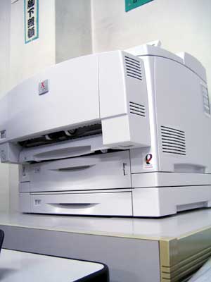 先日導入された新しいモノクロレーザープリンターです。何となくガンダムをイメージしてしまうのは僕だけでしょう。ガンダムよく知らないけど。