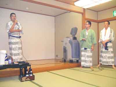 旅館での夕食、宴会というか懇親会ですね。そこで、クジに当たった人が即興の3分間スピーチをするという企画が行われました。各々のスピーチテーマは壇上に上がるまで分かりません。北朝鮮問題から恋愛の失敗談まで、突然ふられる硬軟織り交ぜたテーマに皆さん悪戦苦闘です。それがまた笑えたりします。シーンと静まる危険な空気もありましたが…。