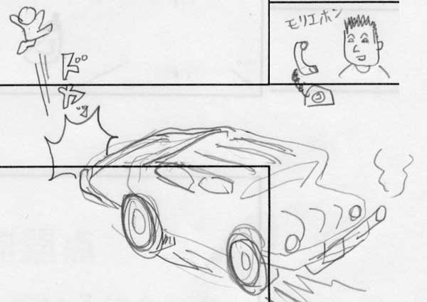 あと何故か暴走自動車に跳ねられる人の絵。よく分かりません。