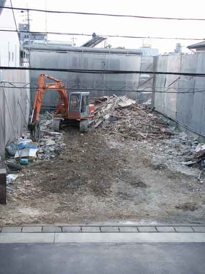 建物が消えてしまうと、広いと思っていた土地も案外狭くみえます。90坪くらいありますが、分筆して2軒の住宅を建てるそうです。すでにサラリーマン夫婦2組の入居が決まっているとか。