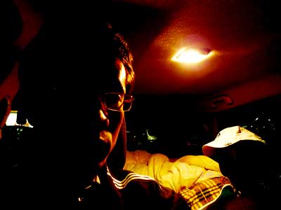 車中泊はエライ…という経験から、車に布団をフルセット持ち込みました。もはや走る寝室状態です。