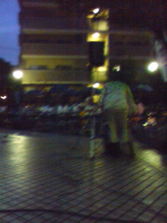 ステージはあるし、スピーカーはセッティングされているものの、CD再生はラジカセしかありません。しかもラジカセから出てる音をマイクで拾ってスピーカーから流すという荒技を必要とするものでした。