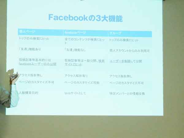 講師は、而立会OBでビジネスにFacebookを活用中のD先輩でした。(社名をイニシャルにするなと言われます)