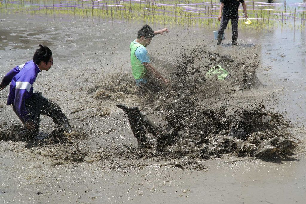 田んぼで行うビーチフラッグ「どろんこビーチフラッグ」の写真はシャッタースピードを高速で撮るのと連写性能が活きますね。