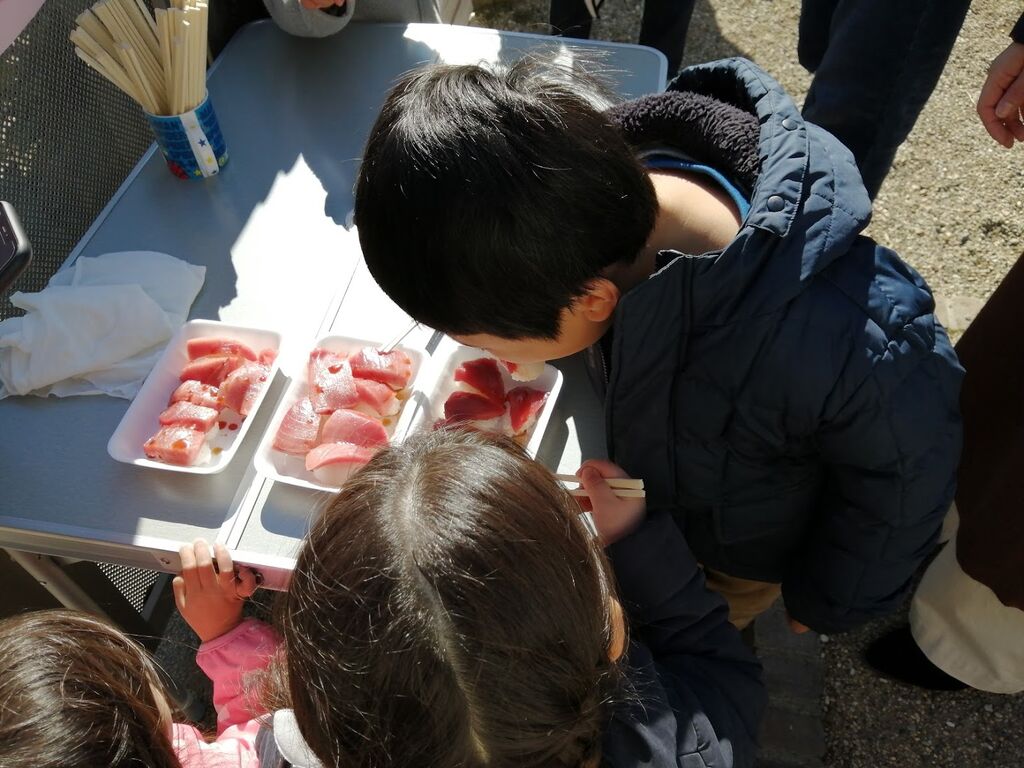 子ども達はマグロが得意ではありませんが、少しだけ食べました!
